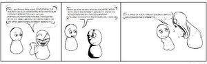 Strawman was created by u/Darvin33mk. He is supposed to be according to the words of his author "a watered down" version of pinhead created by [REDACTED]. Ironically, despite him being "considered" snafu OC, his first appearance was in a smuggie.