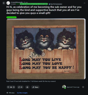 [edit | edit source]This event have been hosted as a celebration of u/le-dukek becoming an admin of the sub, since the old owner and mods have been unresponsive for the long amount of time.